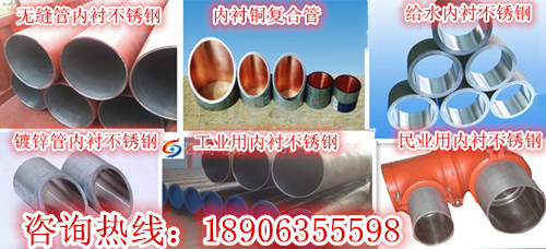 陜西不銹鋼復(fù)合管、陜西內(nèi)襯不銹鋼復(fù)合管、陜西不銹鋼復(fù)合管廠(chǎng)家、陜西不銹鋼復(fù)合管價(jià)格、陜西不銹鋼復(fù)合管現(xiàn)貨、陜西不銹鋼復(fù)合管規(guī)格、陜西雙金屬?gòu)?fù)合管、內(nèi)襯不銹鋼復(fù)合管是新型低碳環(huán)保的專(zhuān)利產(chǎn)品。內(nèi)襯不銹鋼復(fù)合管在輸送腐蝕性介質(zhì)的領(lǐng)域又創(chuàng)新高,克服了其它復(fù)合管材在輸水、輸油、輸氣等應(yīng)用領(lǐng)域上不耐高壓、不耐高溫、不耐腐蝕等性能缺陷。內(nèi)襯不銹鋼復(fù)合管是以薄壁不銹鋼管為內(nèi)襯層,外層由鍍鋅管、焊管、無(wú)縫管、合金鋼復(fù)合而成的一種內(nèi)襯不銹鋼復(fù)合管。已廣泛地應(yīng)用于民用建筑的給排水、消防、暖通、太陽(yáng)能管道的安裝,同時(shí)在石油、化工等工業(yè)領(lǐng)域也有廣泛的應(yīng)用前景。產(chǎn)品規(guī)格DN15-DN2020。